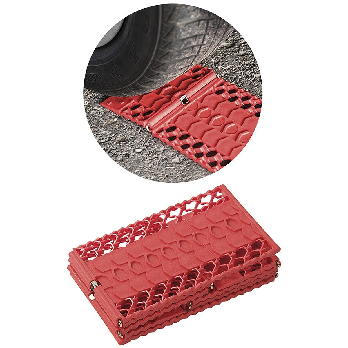 Die faltbare Anfahrhilfe ist ein Must-Have für jeden PKW- Halter und dank Ihres kleinen Packmaßes ein guter Begleiter bei Fahrten durch unwegsames Gelände. Sie eignet sich hervorragend zur Befreiung aus tiefem Schnee, Schlamm oder Sand und verhindert das Durchdrehen der Räder. Man kann diese Antirutschmatte auch als Unterlage für den Radwechsel oder die Montage von Schneeketten verwenden. Sie ist für Autos bis 2 Tonnen geeignet. Aus Sicherheitsgründen sollten keine Personen in unmittelbarer Nähe sein, wenn die Anfahrhilfe verwendet wird. Im Lieferumfang befinden sich 2 Stück.