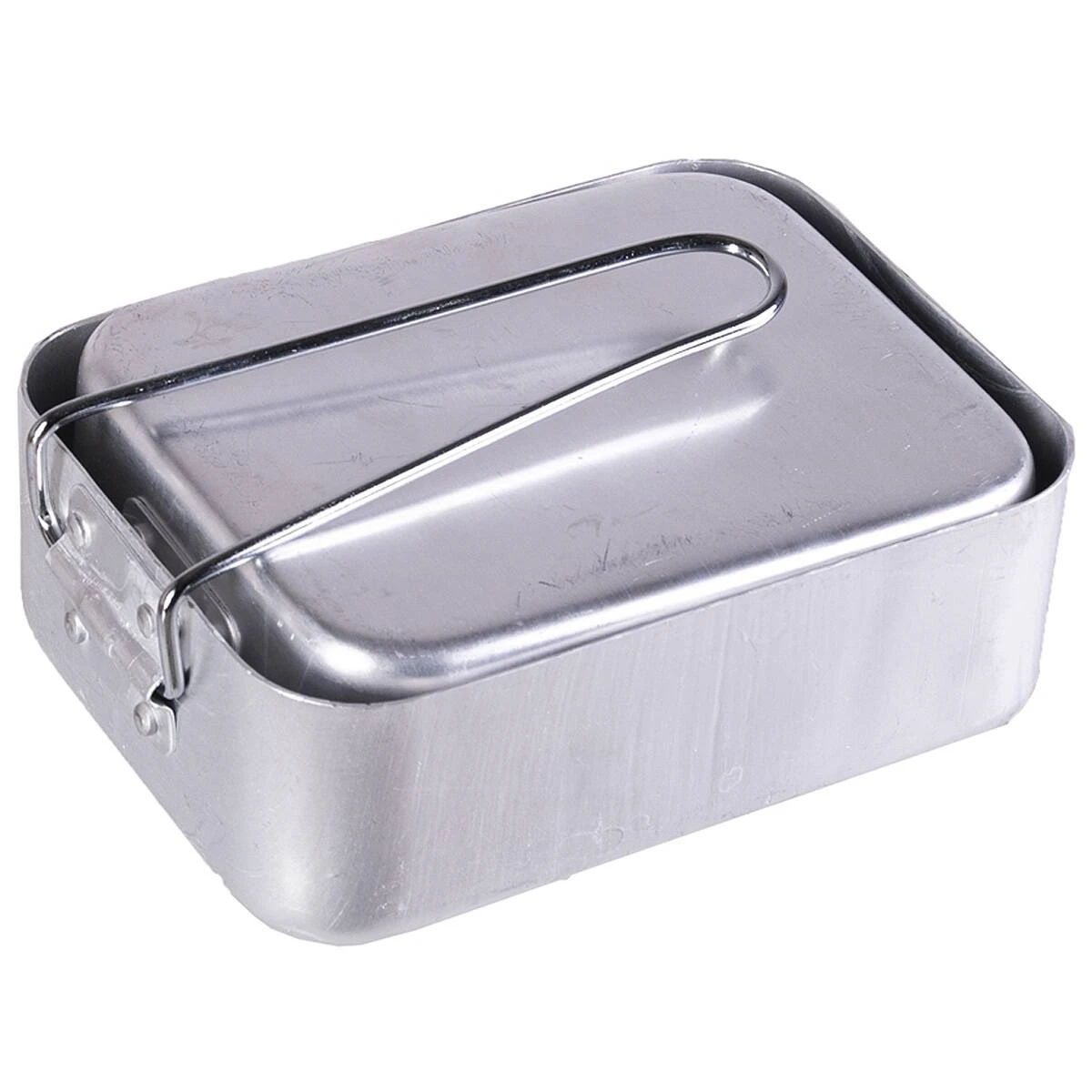 Das originalgetreue britische Kochgeschirr von Mil-Tec ist sehr robust und relativ kratzfest durch die Verwendung von eloxiertem Aluminium. Es ist ineinander stapelbar und besticht durch sein geringes Gewicht. Das Geschirr besitzt umklappbare Griffe.