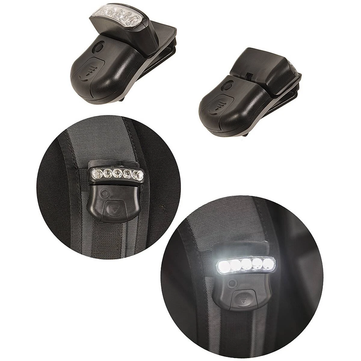 Die robuste LED Lampe mit 5 LEDs verfügt über einen festen stabilen Clip und kann ganz einfach an Baseball Caps, Rucksäcken, Westen oder Molle-Schlaufen befestigt werden. Der Lampenkopf ist verstellbar und kann somit der Umgebung angepasst werden. Das Gehäuse bietet Platz für 2 Batterien. Die Leuchtdauer beträgt bis zu 5 Stunden und die Reichweite ca. 20 Meter.