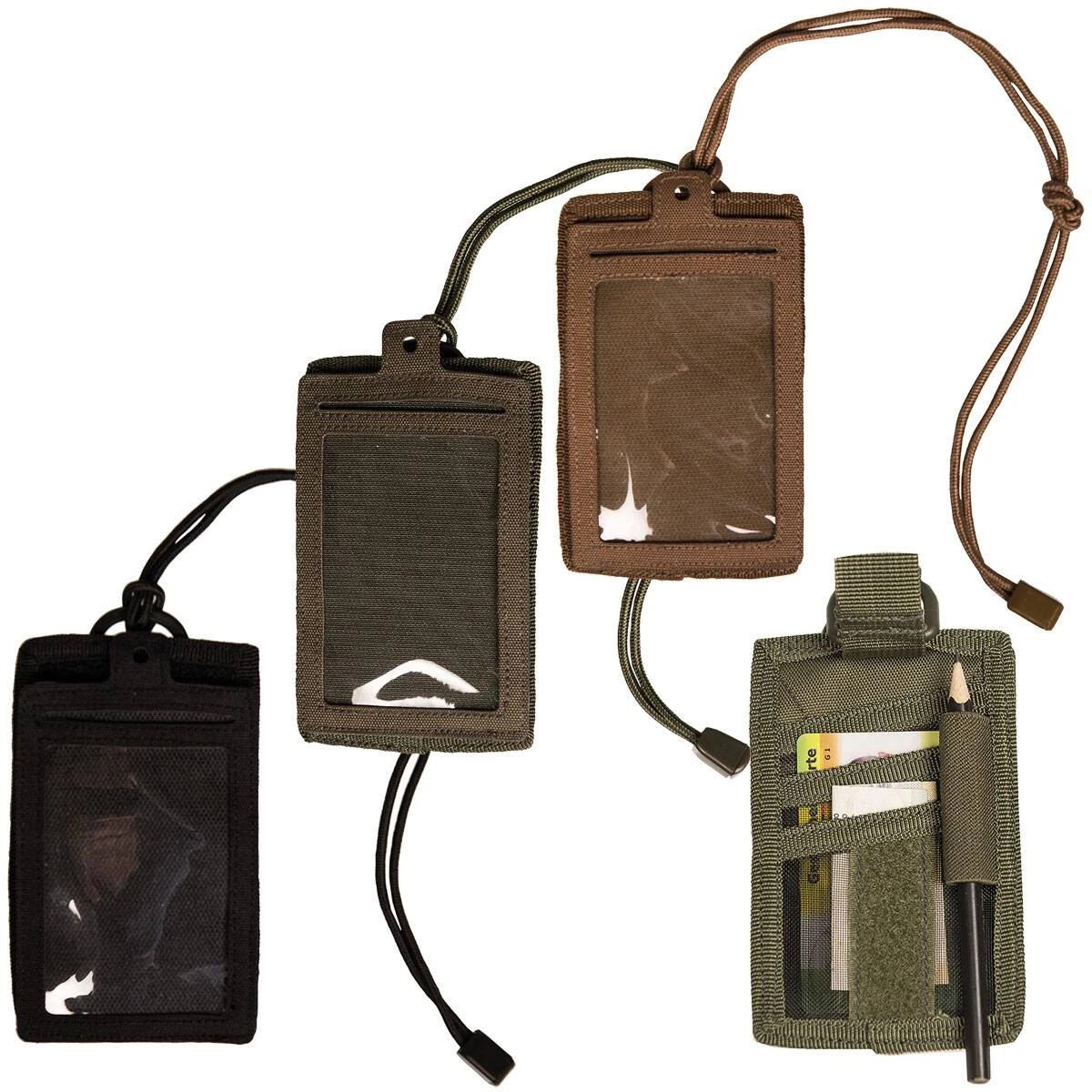 Das ID Card Case ist die perfekte Aufbewahrungsmöglichkeit für den Ausweis und wichtige Karten und durch seine flache Form sehr gut unter der Kleidung tragbar. Es kann umgehängt oder z.B. per Klettverschluss-Schlaufe am Gürtel befestigt werden. Die Ausweishülle kann per Klettverschluss abgenommen werden. Dahinter befinden sich 3 Fächer für Kreditkarten o.ä. Außerdem gibt es einen Stiftehalter.