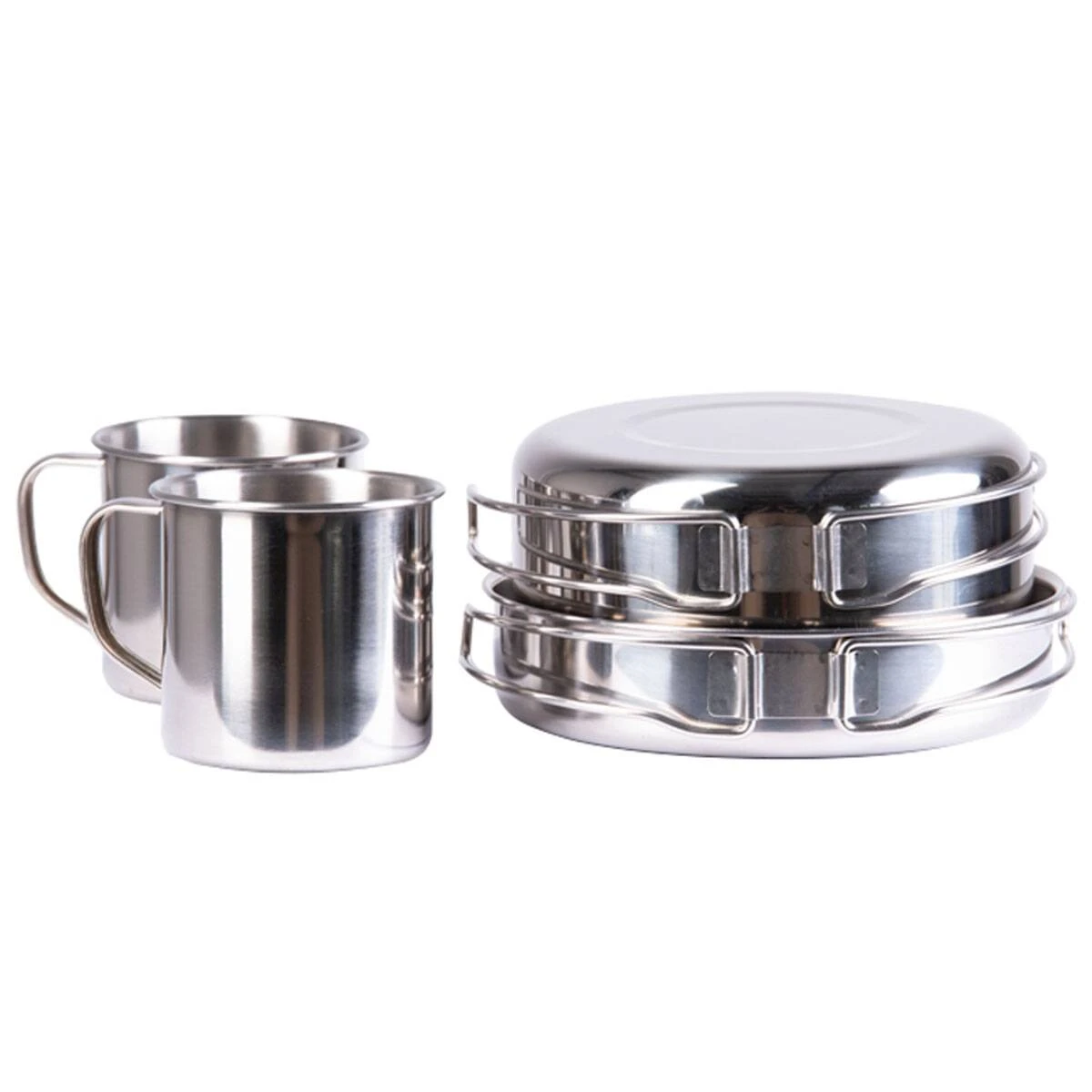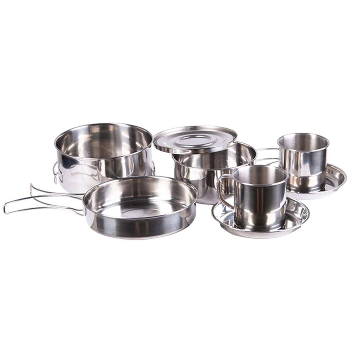 Das 8-teilige Kochset von Mil-Tec aus hochwertigem Edelstahl besteht aus zwei Töpfen, drei Tellern, zwei Bechern sowie einer Pfanne und ist aufgrund seines geringen Packmaßes optimal für unterwegs geeignet. Die Teile können ineinander gestapelt werden und die Griffe sind ausklappbar. Das äußerst zweckmäßige Set wird inklusive Netzbeutel geliefert.