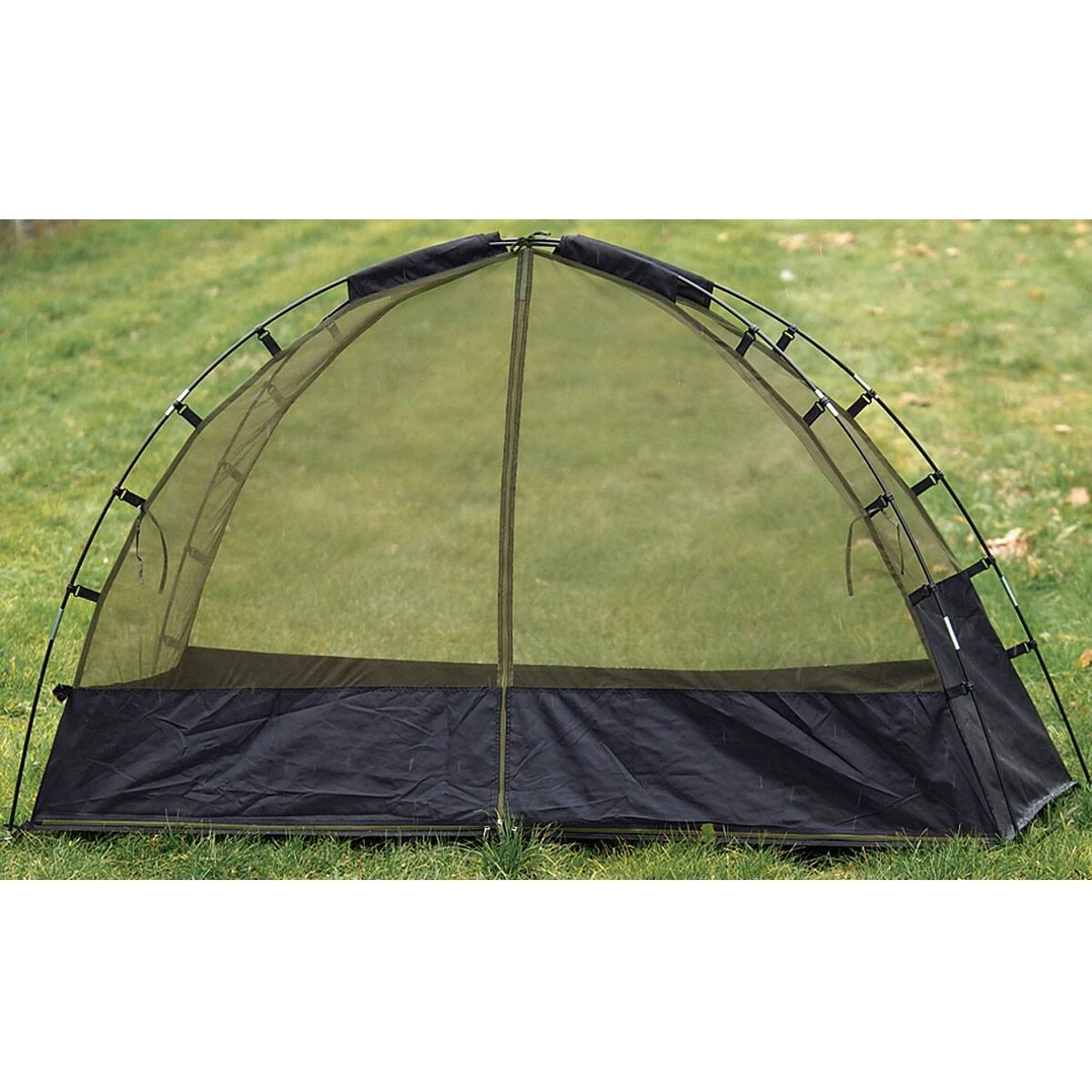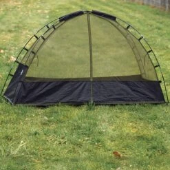 Dieses luftige und selbsttragende Moskitonetz als Zeltkonstruktion mit außenliegendem Glasfibergestänge bietet einen zuverlässigen Schutz vor Stechfliegen und anderen Plagegeistern. Es besitzt einen festen Boden, der somit auch kleine und größere Kriechtiere abwehrt und ist genau passend für ein Feldbett. Das Moskitozelt kann z.B. als Innenzelt, Vorratszelt aber auch für Picknickausflüge in mückenreicher Umgebung eingesetzt werden.