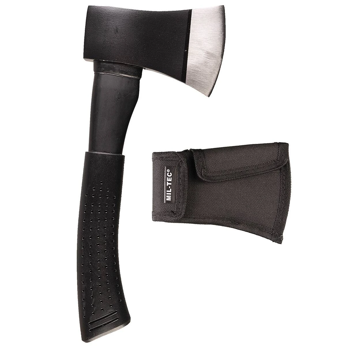 Diese sehr handliche und stabile Vollstahl-Axt wird mit einem gummierten Handgriff und einer Nylonscheide geliefert. Die Scheide ist mit 4 cm breiten Gürtelschlaufen versehen und zwei Klettflächen dienen als Verschluss. Die Rückseite des Beils kann als Hammer verwendet werden.
